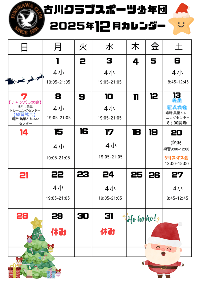 古川クラブ12月予定表です! あっという間に師走ですね~。 古クラも今年最後の月、全力で駆け抜けます […] -